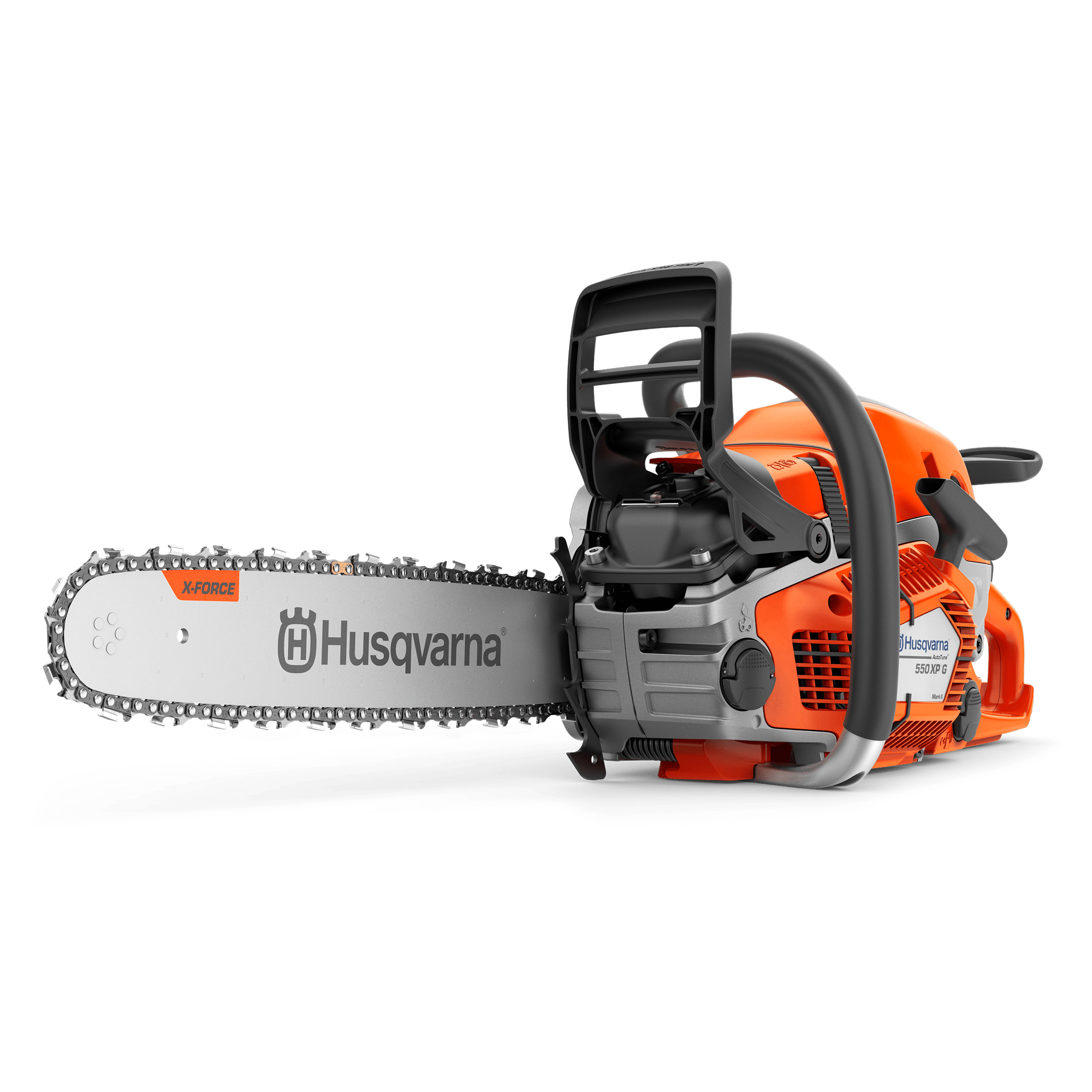Husqvarna 550 XP®G Mark II TrioBrake™ är en kraftfull och smidig 50cc bensinmotorsåg avsedd för professionellt skogsbruk och trädvård. TrioBrake™-systemet ger ökad säkerhet och bättre arbetsteknik och handtagsvärmen håller dina händer varma och torra i kallt och fuktigt väder. En verkligt pålitlig såg med utmärkt kapacitet för effektiv fällning, kvistning och kapning av små och medelstora träd samt för utmanande trädvård.