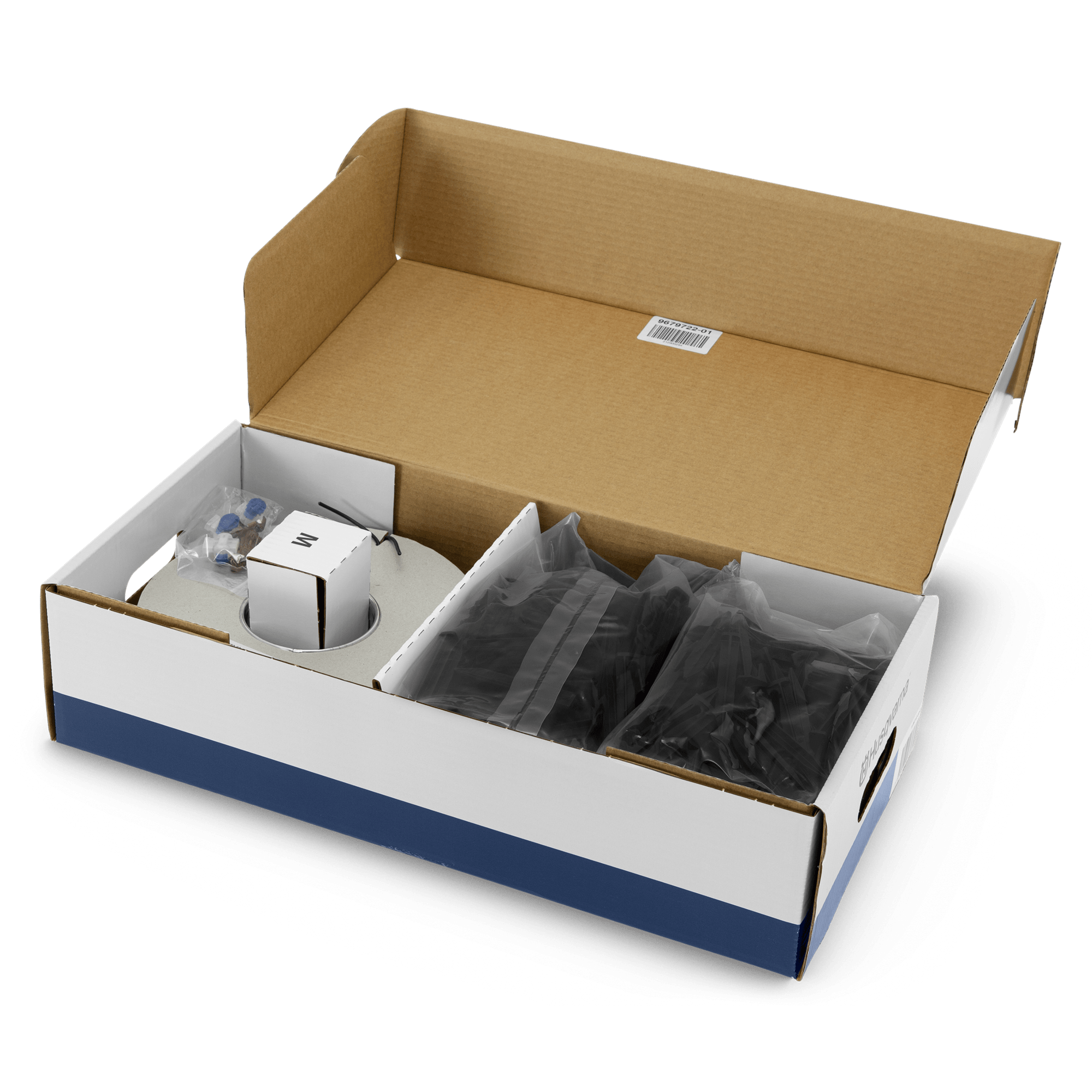 M – Innehåller 250m begränsningskabel / 400 st märlor / 3st skarvdon / 5st anslutningskontakter
